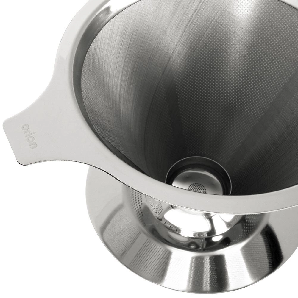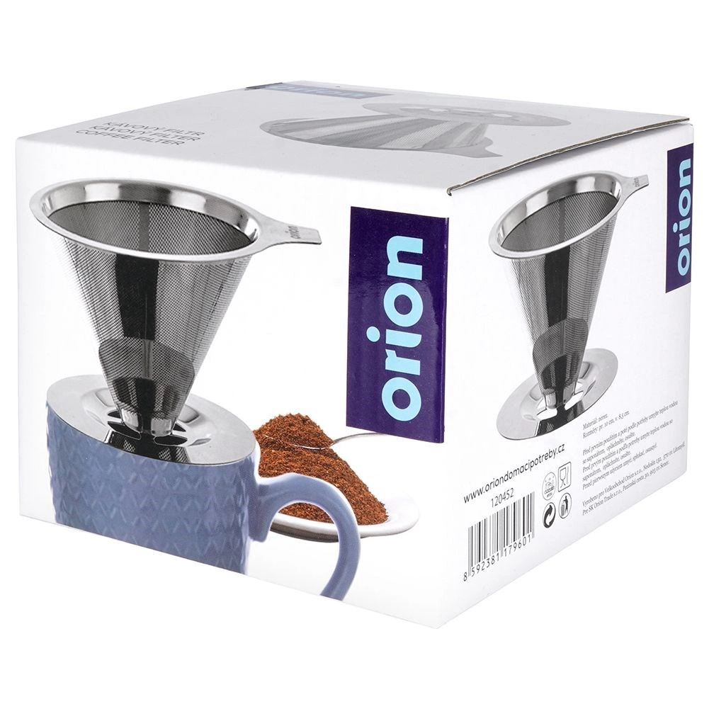 Descoperiți simplitatea preparării manuale a cafelei cu filtrul din inox ORION. Datorită plasei fine din oțel inoxidabil, vă bucurați de gustul și aroma pline, fără gust de hârtie și fără deșeuri inutile. Așezați filtrul pe cană sau pe un vas mic, adăugați cafea măcinată și turnați încet apă fierbinte.