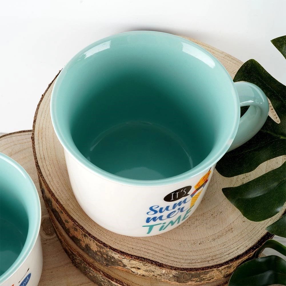 Bucurați-vă de băutura preferată într-o cană elegantă din porțelan de calitate. Combinația culorii albe cu motivul de vară și interiorul mentă oferă mesei o notă proaspătă. Datorită toartei ergonomice, cana se ține confortabil în mână și este perfectă pentru utilizare zilnică.