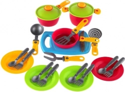 Acest set colorat de vase cu tocător este perfect pentru bucătăriile de jucărie și jocurile de gătit. Plasticul ușor, dar robust, asigură o utilizare sigură și de durată, iar piesele individuale se țin ușor de către copii.