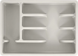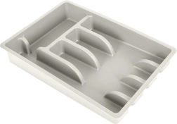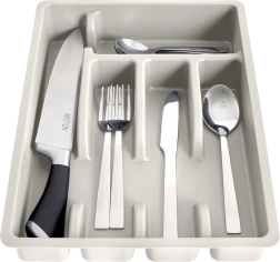 Organizator practic pentru tacâmuri cu dimensiunile 36 × 25,5 × 6 cm menține bucătăria ordonată. Inserție universală pentru sertar din plastic de calitate, de culoare gri, oferă 5 compartimente pentru furculițe, cuțite, linguri, lingurițe pentru ceai și ustensile de bucătărie mai lungi. Se întreține ușor – este suficient să ștergeți cu o cârpă umedă sau să spălați în mașina de spălat vase.