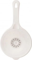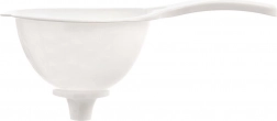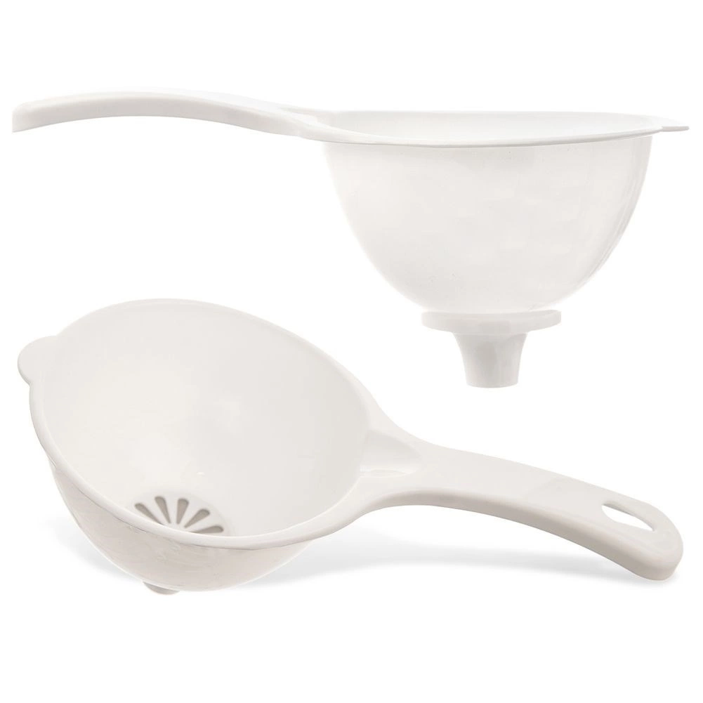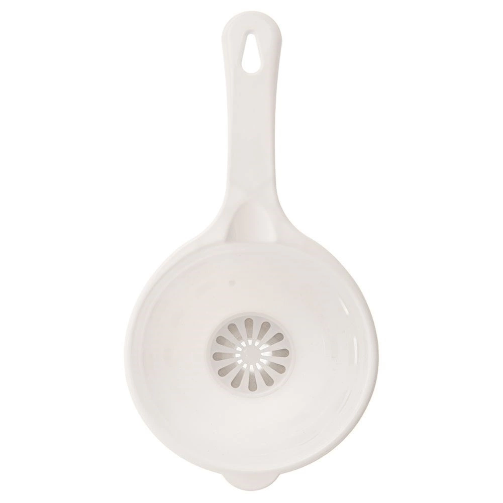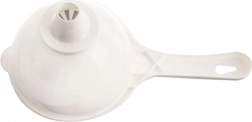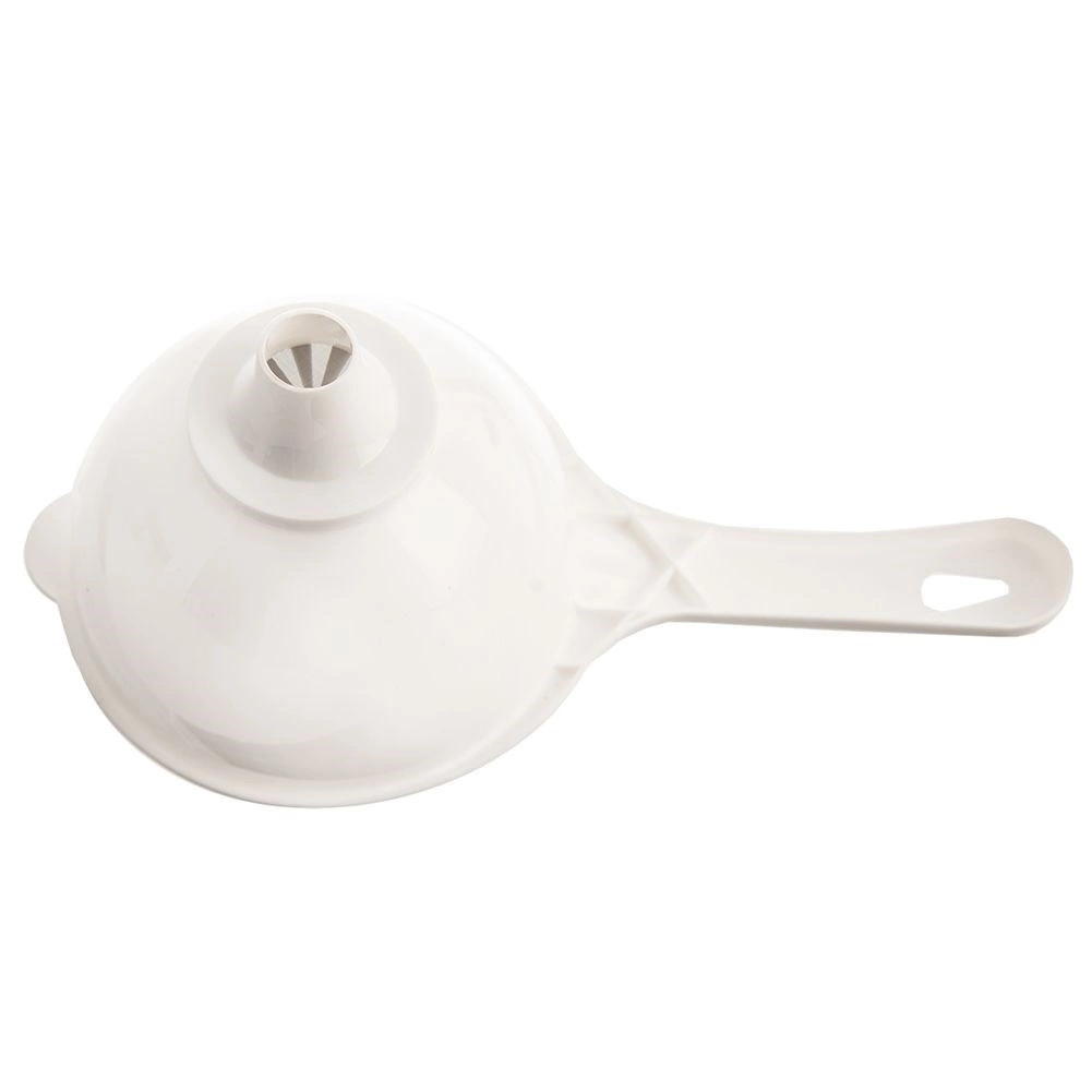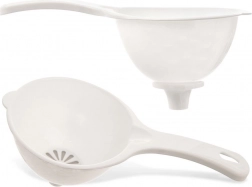 Pâlnia universală cu sită, în culoare albă, facilitează transferul băuturilor și al ingredientelor fine fără vărsare. Sita integrată reține bucățile de fructe, reziduurile sau particulele mici, astfel încât în sticlă sau pahar curge doar lichid curat. Datorită mânerului solid, aveți mereu control și stabilitate la turnare.
