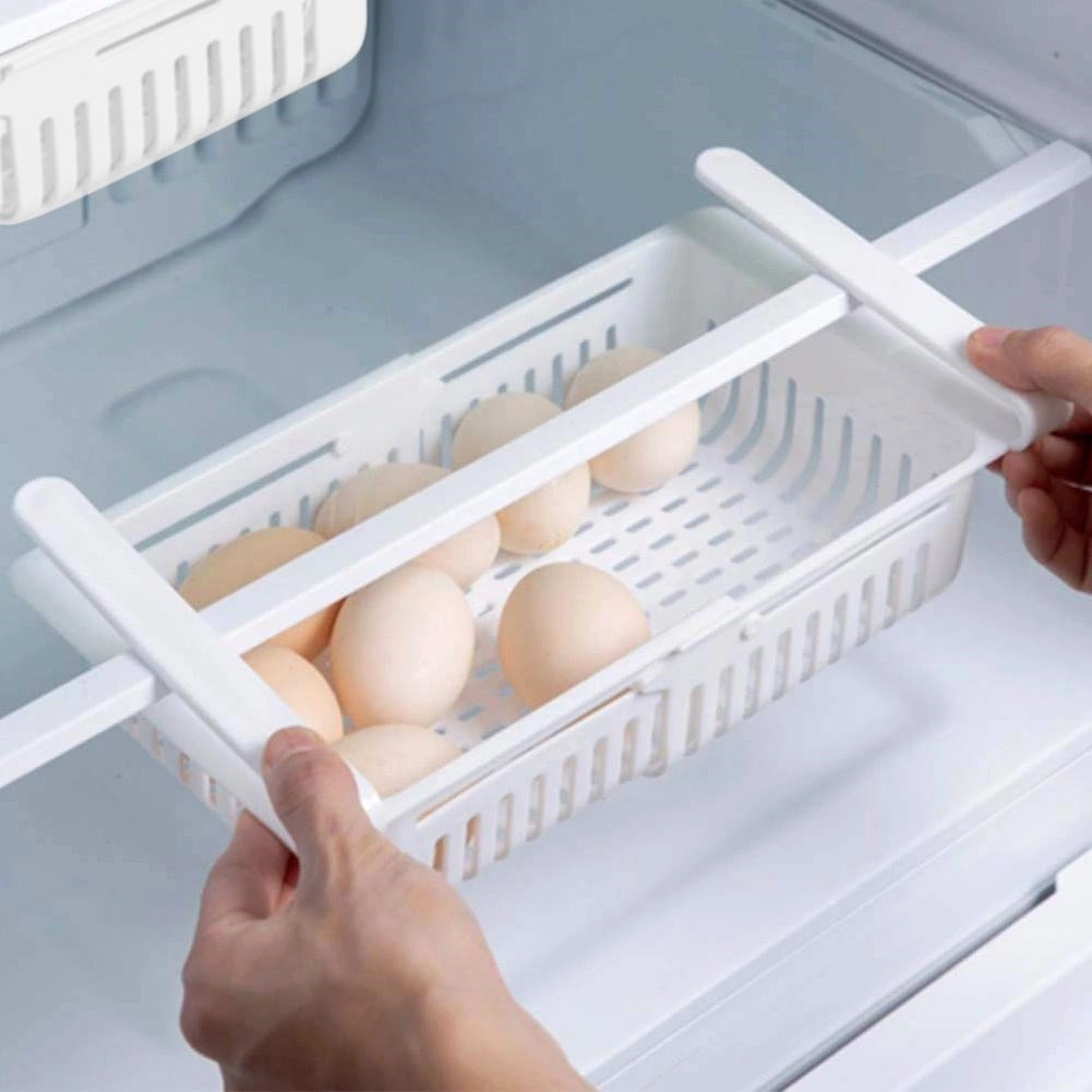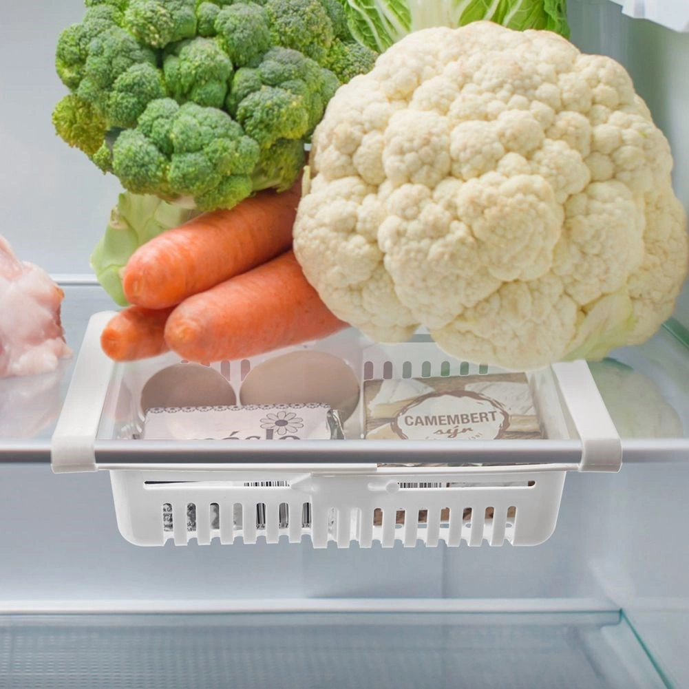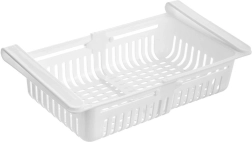 Coș suspendat practic pentru frigider, extensibil de la 21 la 28,7 cm, care te ajută să valorifici inteligent spațiul de sub raft. Este ușor, rezistent și se montează simplu, fără unelte. Datorită construcției ventilate, alimentele rămân proaspete mai mult timp și ai totul la îndemână, bine organizat. Lungime extensibilă, instalare ușoară sub raft, execuție robustă și orificii de ventilație pentru o circulație mai bună a aerului.