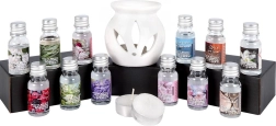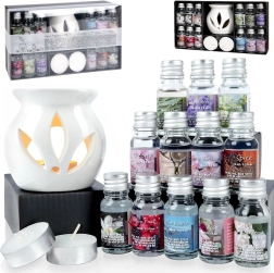 Uleiurile parfumate de 10 ml, în tonalități variate, vă permit să alegeți aroma în funcție de dispoziție – de la citrice proaspete la acorduri lemnoase calde. Lampa poate fi folosită atât cu uleiurile din set, cât și cu ceruri parfumate. Este suficient să turnați câteva picături de ulei în bolul cu apă, să introduceți lumânarea tip pastilă și, în câteva clipe, vă bucurați de o sesiune relaxantă de aromaterapie.