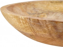 Bol elegant din lemn exotic de mango, cu diametrul de 30 cm și volumul de 1,5 l, ideal pentru servirea salatelor, gustărilor și a preparatelor calde. Se remarcă prin fibrele naturale ale lemnului, rezistența la umiditate și mirosuri și utilizarea universală, de la servire la masă până la un bol decorativ pentru fructe.