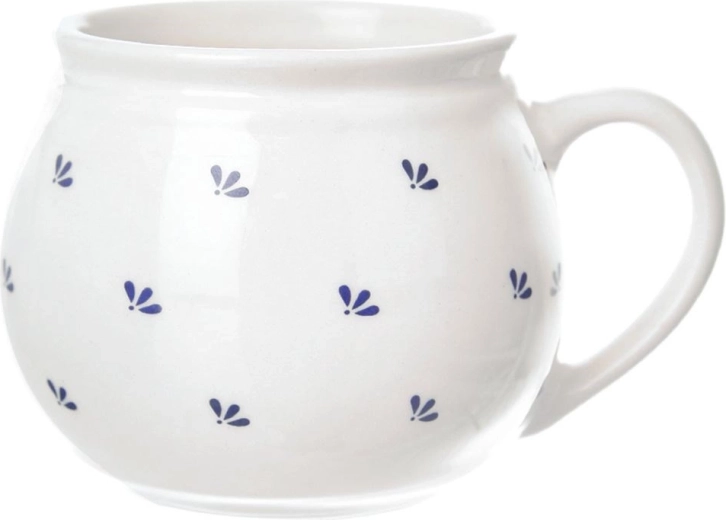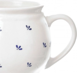 Cană stilată din ceramică de calitate, în combinație albastru-alb, excelentă pentru băuturi fierbinți și reci. Dimensiunile compacte (diametru 8 cm, înălțime 6,5 cm) asigură utilizare confortabilă zi de zi, acasă sau la birou. Decorul floral punctat, delicat, conferă cănii un aspect atemporal.