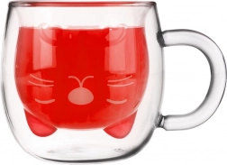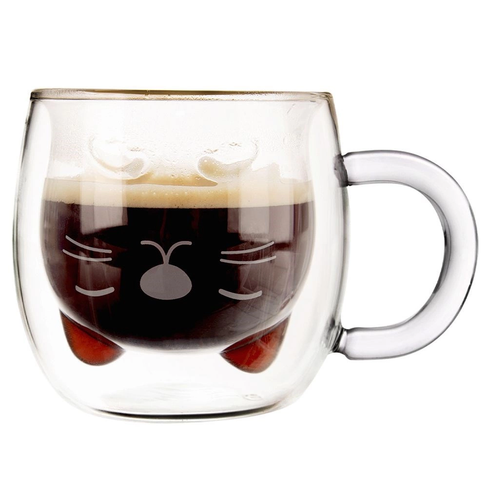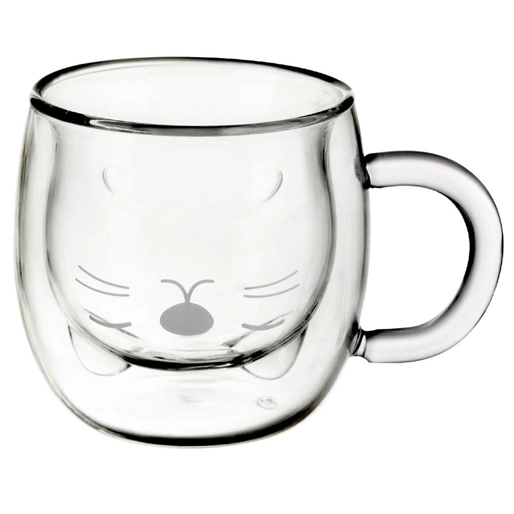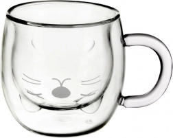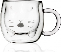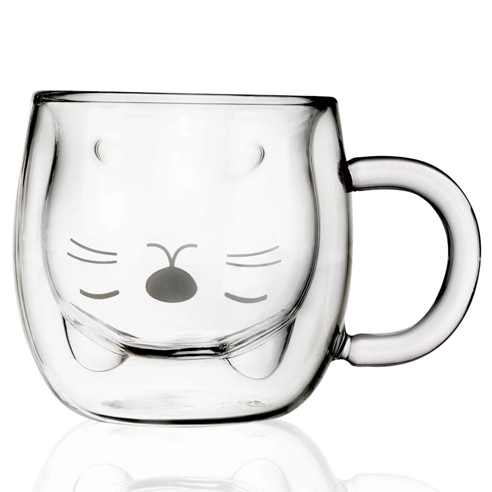 Bucurați-vă de cafea sau cacao într-un pahar drăgălaș cu motiv de pisică, care datorită peretelui dublu păstrează băutura caldă sau rece mai mult timp, în timp ce suprafața exterioară rămâne mai rece la atingere. Paharul este realizat din sticlă borosilicată rezistentă, care suportă mai bine șocurile termice și este ușoară în mână.