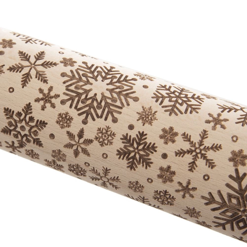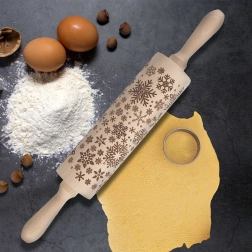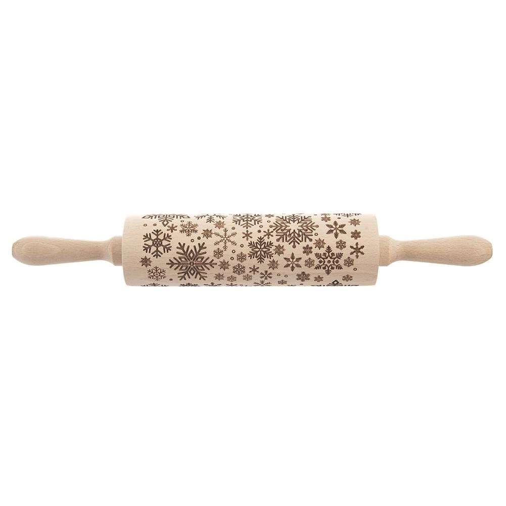 Transformă coptul într-o bucurie creativă. Sucitorul în relief din lemn de fag cu motiv de fulgi de zăpadă gravat cu laser imprimă în câteva secunde un frumos model festiv pe aluat. Partea rotativă asigură o mișcare lină, fără efort, iar mânerele confortabile se așază perfect în palmă.