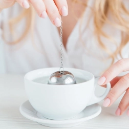 Lanțișorul cu cârlig se prinde ușor de marginea cănii sau a ceainicului, iar sita se extrage în siguranță după infuzare.