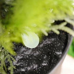 Brăduțul este așezat într-un ghiveci negru stabil, care oferă decorațiunii un aspect modern și asigură o poziționare sigură. Se potrivește în interioare clasice și moderne și poate fi completat cu decorațiuni sau luminițe fine.
