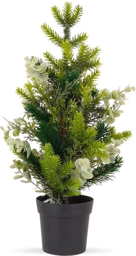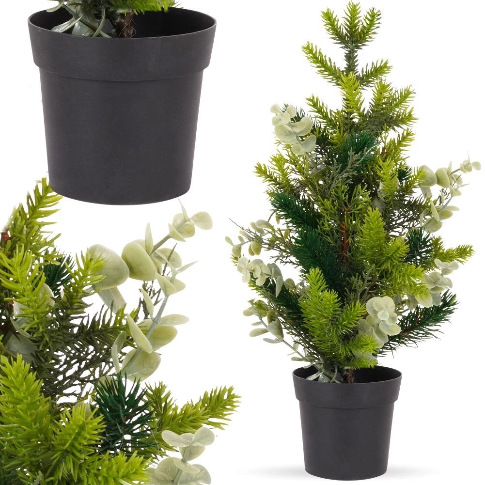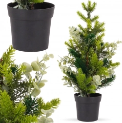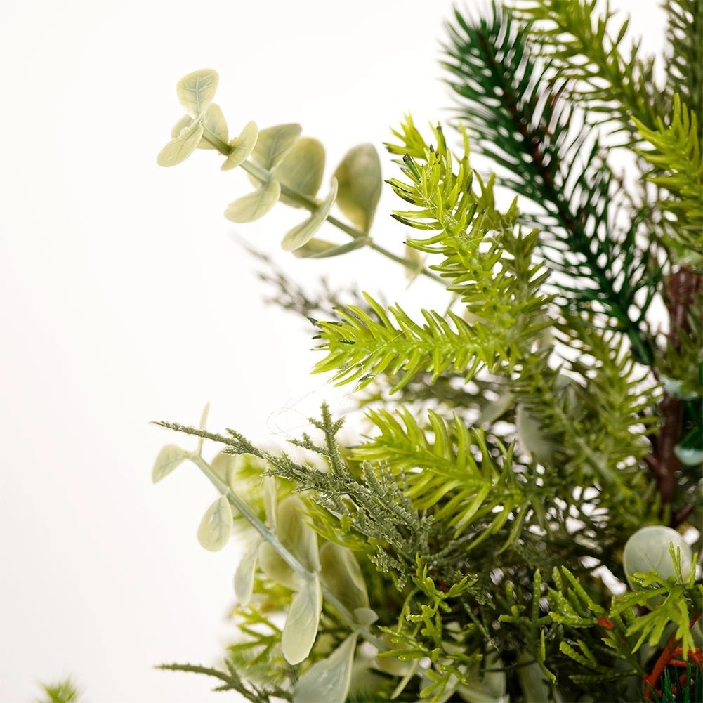 Un brăduț artificial elegant cu frunzulițe de eucalipt care se remarcă pe masă, comodă sau birou. Datorită execuției de calitate are un aspect natural și aduce în casă farmecul sărbătorilor fără grija acelor care cad.