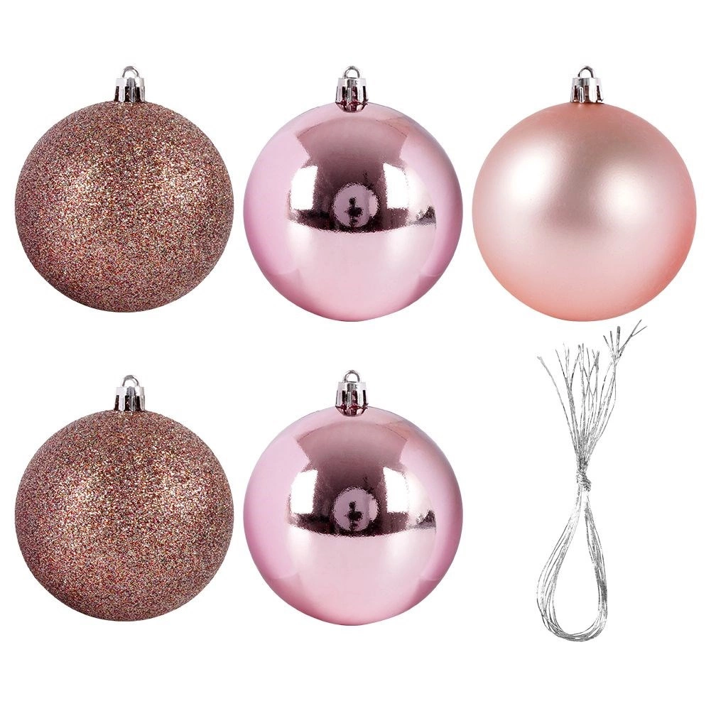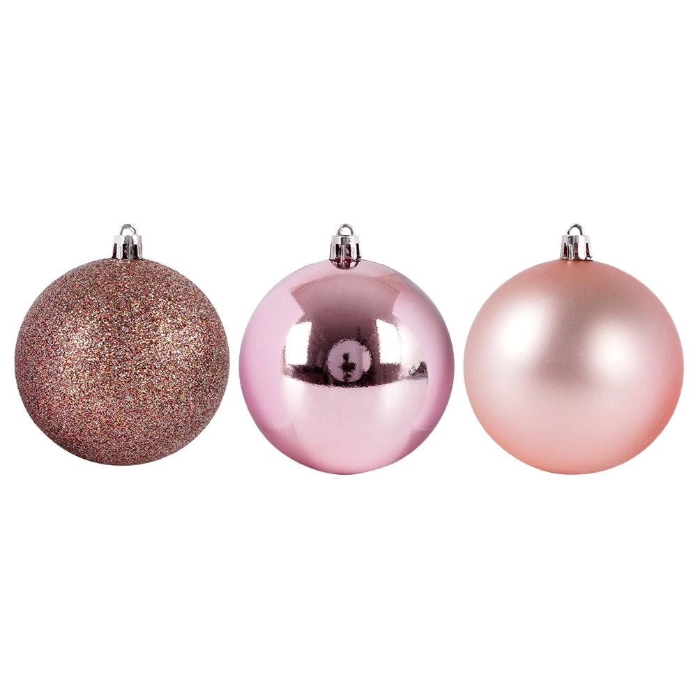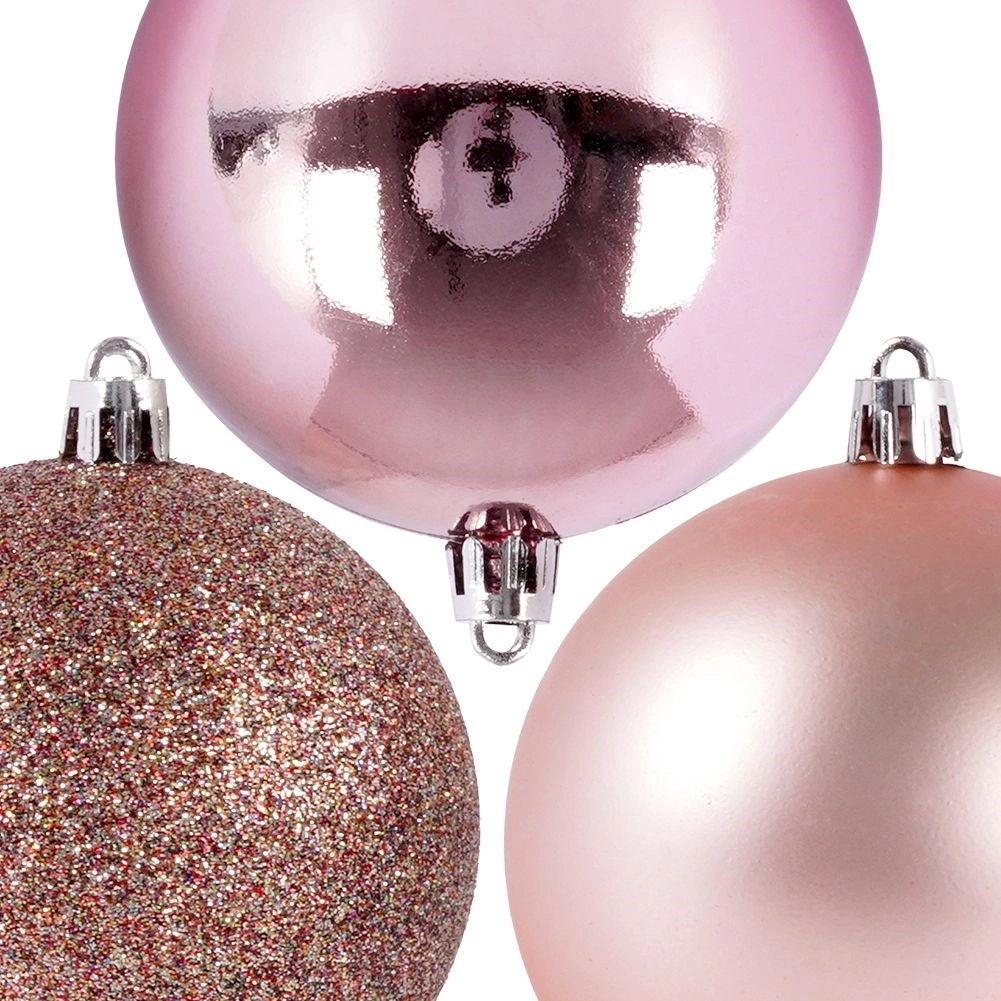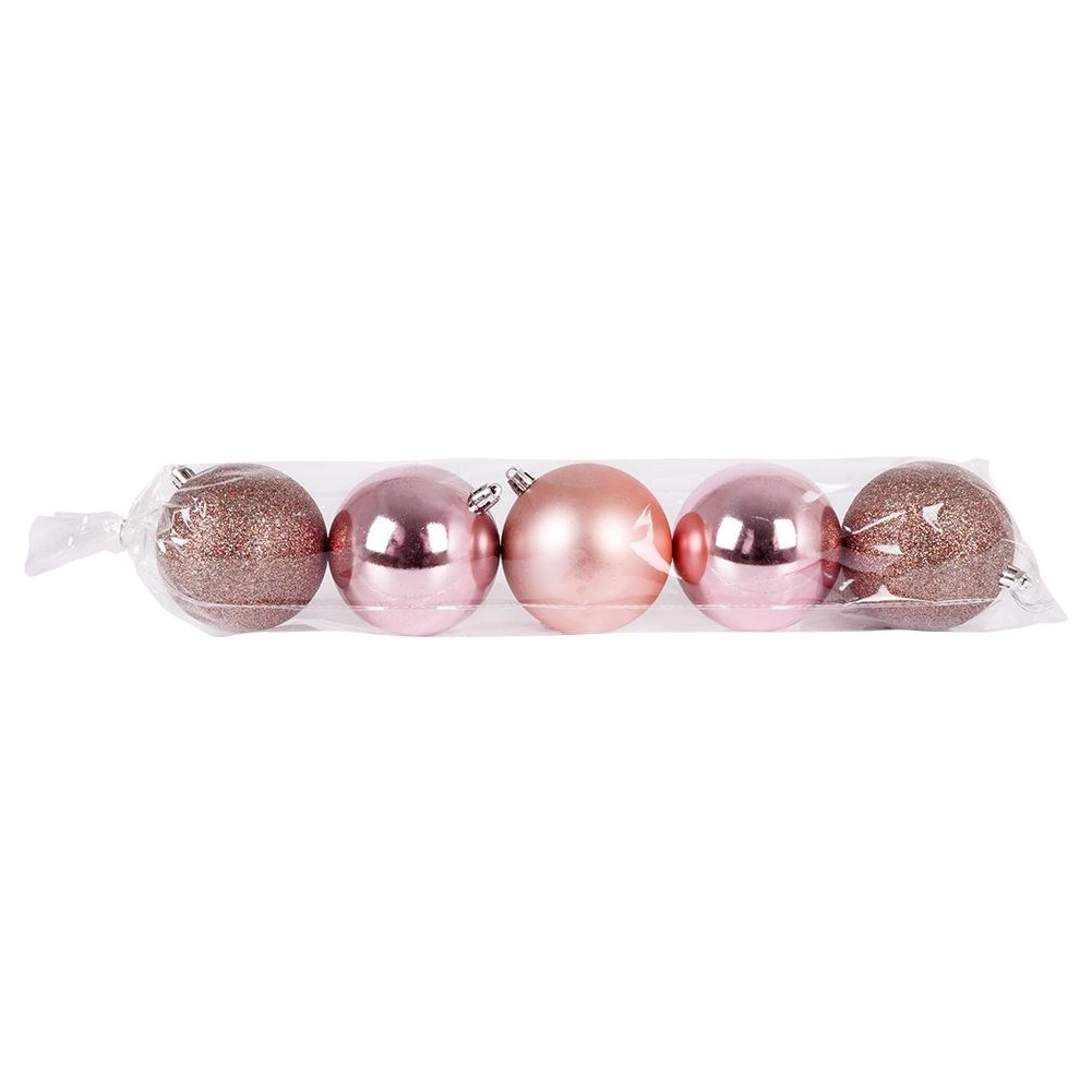 Creați o atmosferă festivă perfectă cu setul atemporal de 5 globuri roz. Combinația de finisaj lucios, sclipitor și mat oferă bradului profunzime, contrast și o strălucire delicată. Datorită plasticului de calitate, globurile sunt ușoare, rezistente și sigure – excelente pentru familii cu copii și animale de companie.