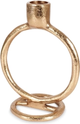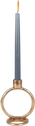 Sfeșnic de design din aluminiu de calitate, în variantă luxoasă aurie, destinat lumânărilor lungi cu diametrul de până la 2 cm. Liniile sale curate și inelul circular creează un accent atrăgător, ușor de integrat în interioare moderne, scandinave sau industriale.