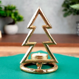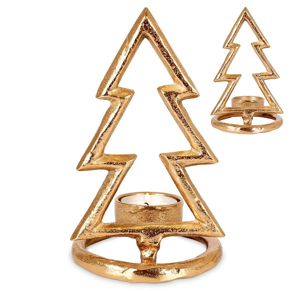 Aduceți acasă atmosfera sărbătorilor cu sfesnicul auriu în formă de brad. Silueta minimalistă, construcția metalică solidă și luciul discret îl transformă într-un accesoriu atemporal pentru living, dormitor sau sufragerie. Arată grozav atât singur, cât și în set.