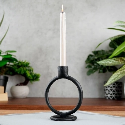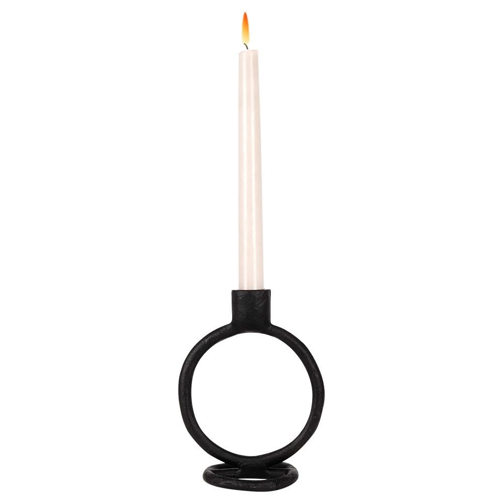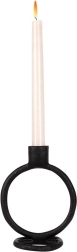 Forma circulară sculpturală și negrul mat transformă sfeșnicul într-un accent modern care evidențiază caracterul interiorului fără ornamente inutile.