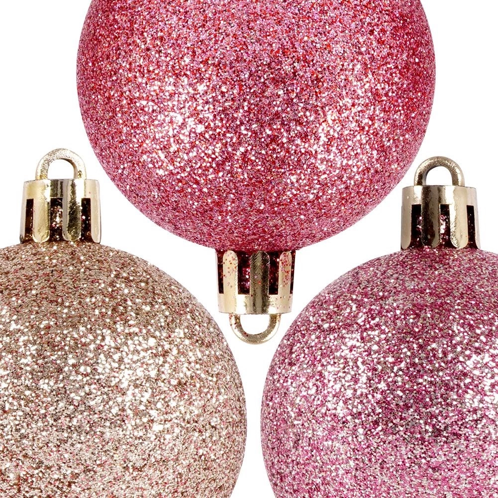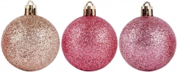 Setul combină trei tonuri de roz cu finisaj glitter pentru un aspect luxos și strălucitor, care evidențiază orice decor de Crăciun.