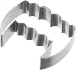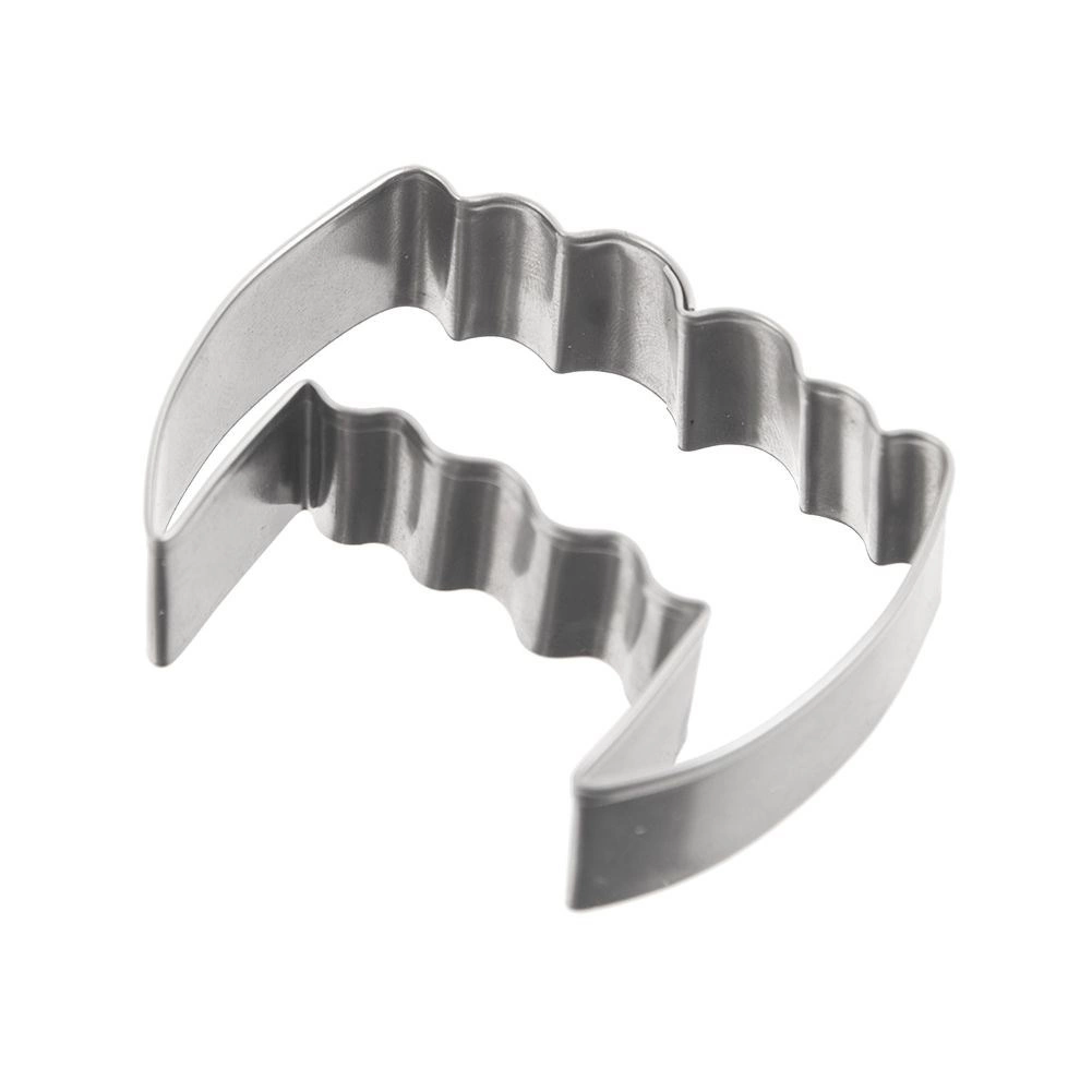 Pregătiți delicii amuzante și tematice în câteva clipe. Forma metalică pentru decupat în formă de dinți de vampir este ideală pentru biscuiți, turtă dulce și decorațiuni din fondant. Datorită muchiei ferme din oțel inoxidabil, taie forme curate și precise fără a rupe aluatul.