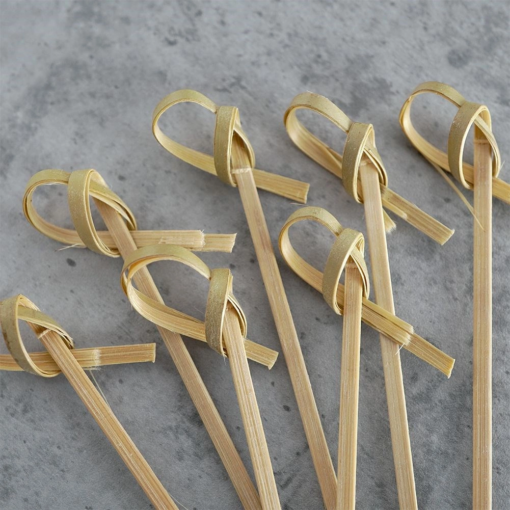 Descoperiți o modalitate elegantă de a servi gustări cu scobitorile din bambus de 10 cm. Bambusul natural asigură rezistență și durabilitate, iar bucla practică de la capăt menține ingredientele în siguranță la locul lor. Excelente pentru petreceri în familie, întâlniri de afaceri și catering.
