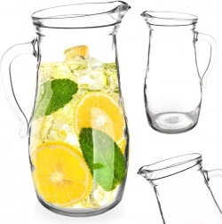 Carafa elegantă și rezistentă din sticlă este un element de bază în orice gospodărie. Datorită volumului de 1,75 l, veți servi cu ușurință prânzul în familie, un picnic în grădină sau o întâlnire cu prietenii. Sticla transparentă și groasă evidențiază culoarea băuturii și adaugă stil mesei.