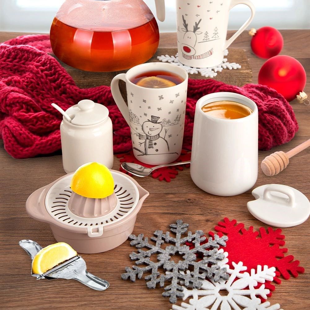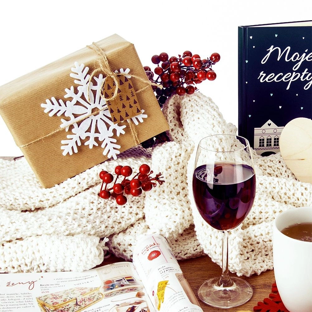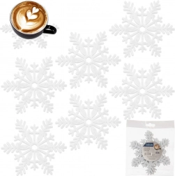 Suporturile albe, stilate, din fetru gros, protejează în mod fiabil suprafața mesei împotriva căldurii, umezelii și zgârieturilor. Motivul de iarnă cu fulgi de zăpadă creează imediat o atmosferă de sărbătoare și face orice interior mai primitor. Suporturile sunt ușor de depozitat, ușoare și plăcute la atingere.