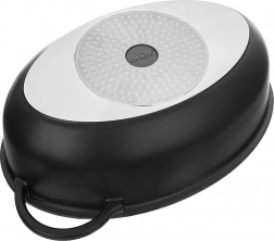 Tava este realizată din turnare din aluminiu rezistentă, distribuie uniform căldura și o menține mult timp. Este compatibilă cu inducția, plitele pe gaz, electrice și vitroceramice și este potrivită și pentru cuptor. Mânerele laterale ergonomice asigură o manipulare sigură de pe plită în cuptor și pe masă.