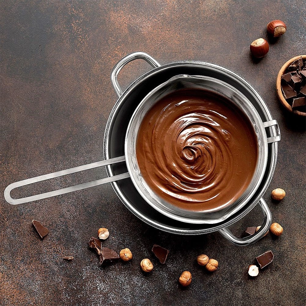 Topiți ciocolata, untul sau ceara uniform și fără a se arde, datorită bolului robust din inox destinat băii de apă.