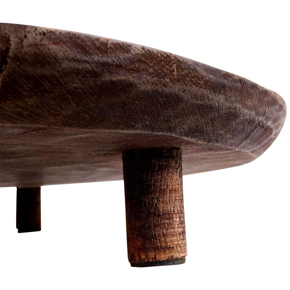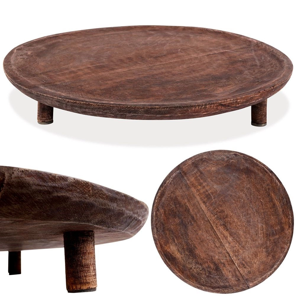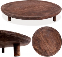 Placa rotundă de servire pe picioare joase adaugă înălțime și stil mesei, fiind perfectă pentru prezentarea preparatelor și a decorațiunilor.