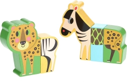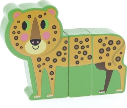 Puzzle-ul din lemn Safari vesel le oferă copiilor de la 2 ani o distracție diferită: fiecare animăluț este format din piese masive cu magneți ascunși, care se îmbină lin. Piesele pot fi schimbate între animale pentru a crea amuzanți „hibrizi” ce stimulează imaginația și curiozitatea.