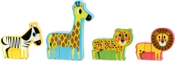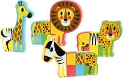 Patru animale safari cu piese magnetice pot fi combinate între ele în orice mod – perfect pentru dezvoltarea creativității și imaginației.