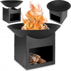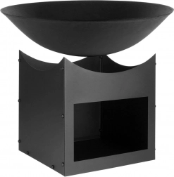 Construcția metalică masivă cu finisaj negru mat este concepută pentru durabilitate și întreținere ușoară. Vatra este o alegere excelentă pentru seri petrecute afară, încălzire iarna și ca accesoriu estetic pentru exterior. Poate fi folosită și ca suport pentru ceaun sau pentru grătar simplu.