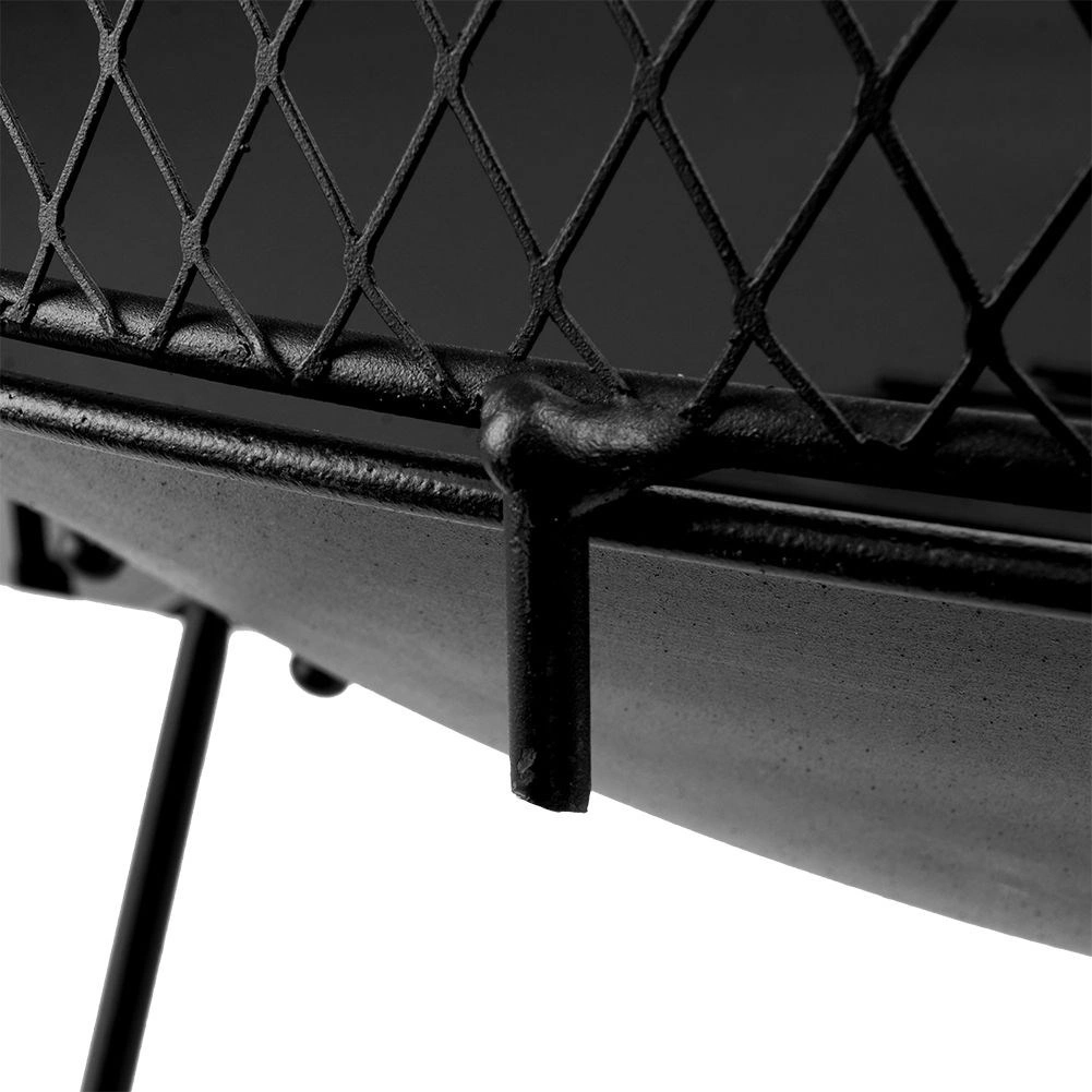 Focarul metalic durabil este conceput pentru o atmosferă plăcută și siguranță. Vasul adânc cu margine înălțată din plasă ajută la menținerea buștenilor pe loc și împiedică împrăștierea jarului. Datorită picioarelor din oțel stabile și aerisirii bine gândite, lemnul se aprinde rapid și arde uniform.