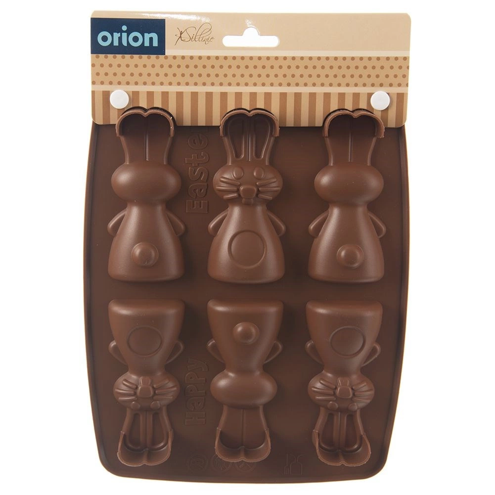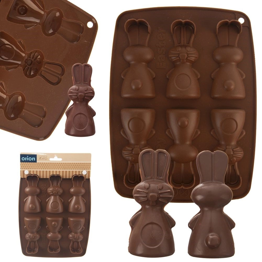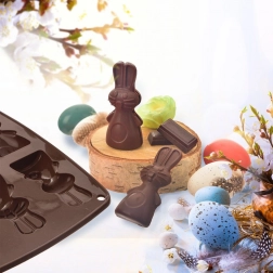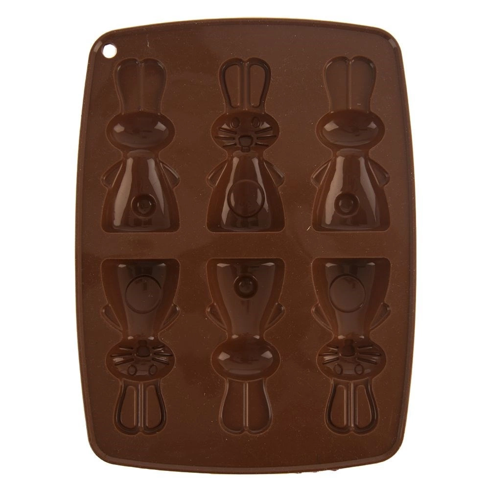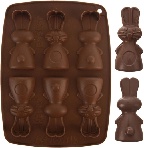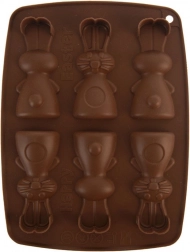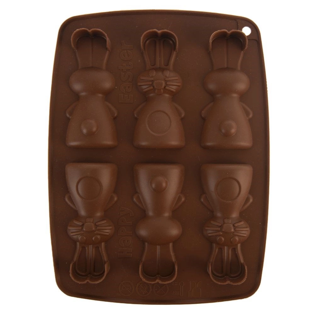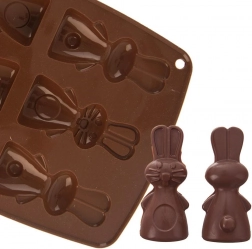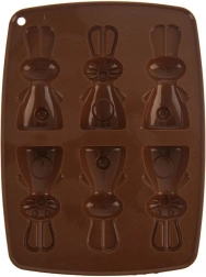 Această formă din silicon, de culoare maro, permite pregătirea simultană a până la 6 iepurași adorabili. Datorită materialului flexibil și antiaderent, vei scoate cu ușurință biscuiții, pralinele sau ciocolățelele finalizate, cu un relief detaliat. Forma este ușoară, ușor de depozitat și nu absoarbe mirosuri sau arome.
