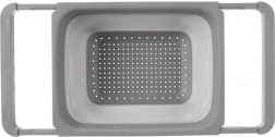 Mânerele se extind ușor în funcție de lățimea chiuvetei și oferă un sprijin stabil pentru scurgere și clătire confortabile, hands‑free.
