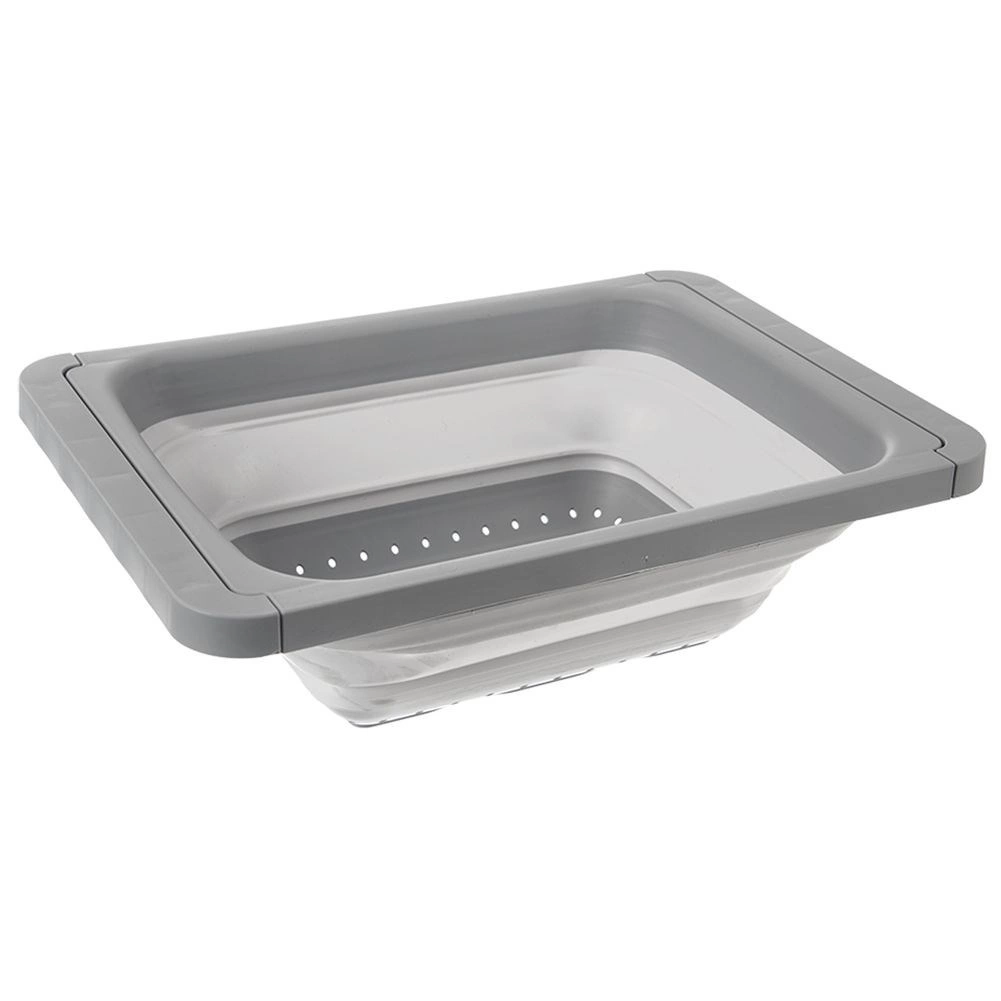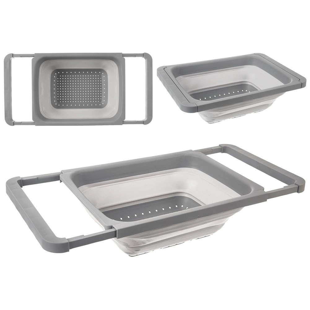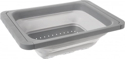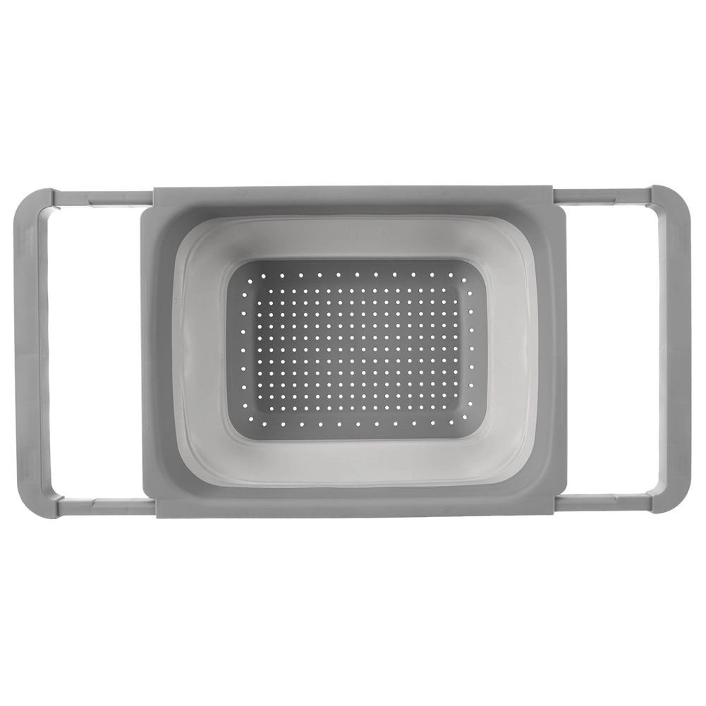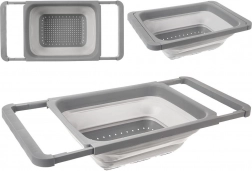 Strecurătoarea pliabilă pentru chiuvetă îmbină un design ingenios cu materiale rezistente pentru confort maxim în bucătărie. Mânerele extensibile se adaptează ușor lățimii chiuvetei, astfel încât ai ambele mâini libere pentru clătire și scurgere comode. După utilizare, o pliezi la plat și o depozitezi chiar și pe un raft jos.