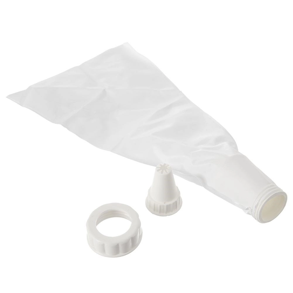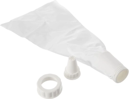 Adaptorul fixează sigur duza chiar și cu creme dense și presiune mai mare. Duzele pot fi schimbate fără a scoate umplutura din pungă.