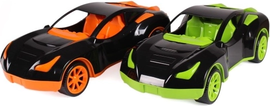 Alegeți între combinația negru–portocaliu și negru–verde, cu roți vizibile și linii sportive.