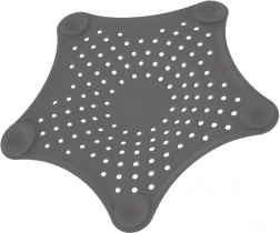Sita din silicon în formă de stea cu cinci colțuri este un ajutor inteligent împotriva înfundării scurgerii. Captează eficient resturile de mâncare, părul și particulele fine, fără a împiedica fluxul apei. Materialul moale și rezistent, de culoare gri, este blând cu suprafețele și se clătește ușor.