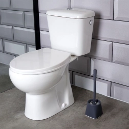 Designul minimalist, decorativ, se potrivește în orice baie sau toaletă. Suportul servește drept loc de depozitare igienic, menține peria în poziție verticală și colectează apa care se scurge. Mânerul confortabil se potrivește perfect în mână și facilitează curățarea temeinică a marginilor și curbelor vasului.