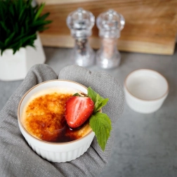 Aceste cocote universale din porțelan sunt perfecte pentru crème brûlée, sufleu, porții gratinate mici, dar și pentru servirea măslinelor, nucilor, sosurilor și dressingurilor. Designul clasic striat cu glazură lucioasă se potrivește în orice bucătărie și arată impecabil pe o masă aranjată.