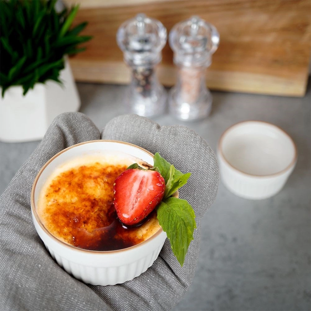 Potrivite pentru mașina de spălat vase, cuptorul cu microunde și congelator. Ideale pentru crème brûlée, sufleu, porții gratinate, sosuri și gustări.
