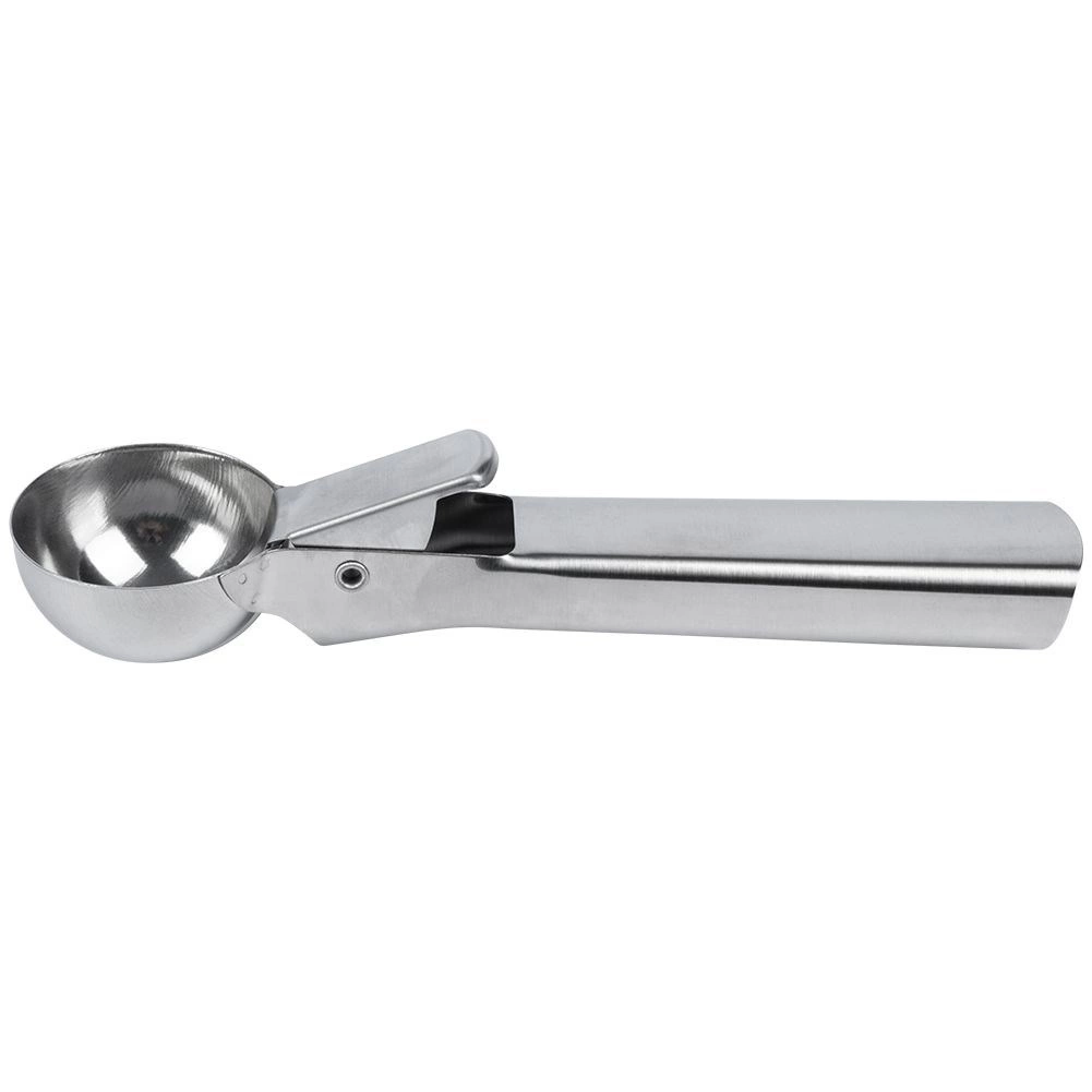 Această lingură din oțel inoxidabil pentru înghețată este concepută pentru porționare rapidă și precisă. Datorită construcției robuste din metal, nu se îndoaie la servire, iar ejectorul cu pârghie integrat asigură că eliberați bilele din cupă curat și fără lipire.