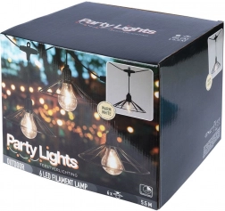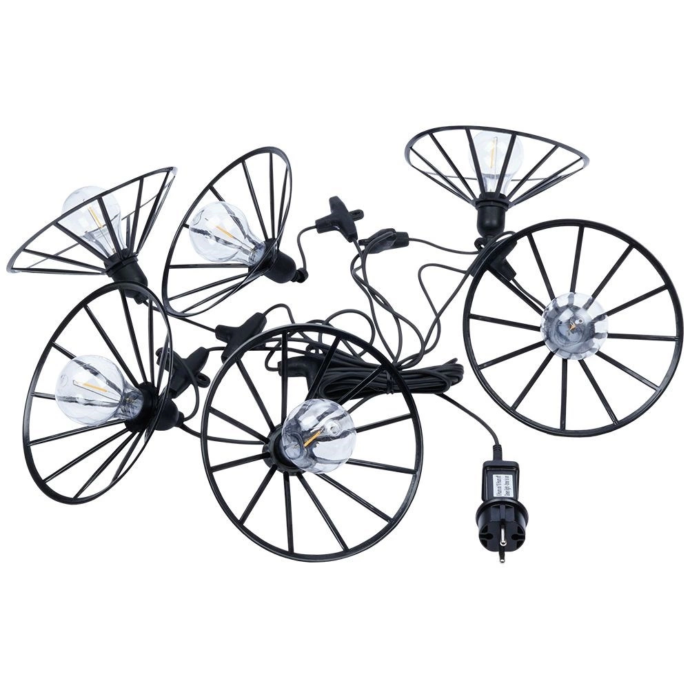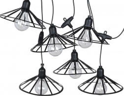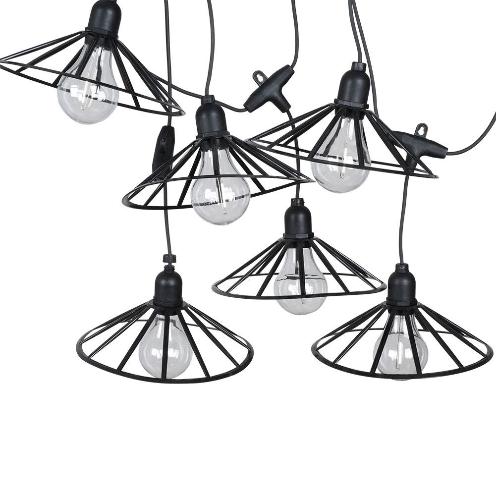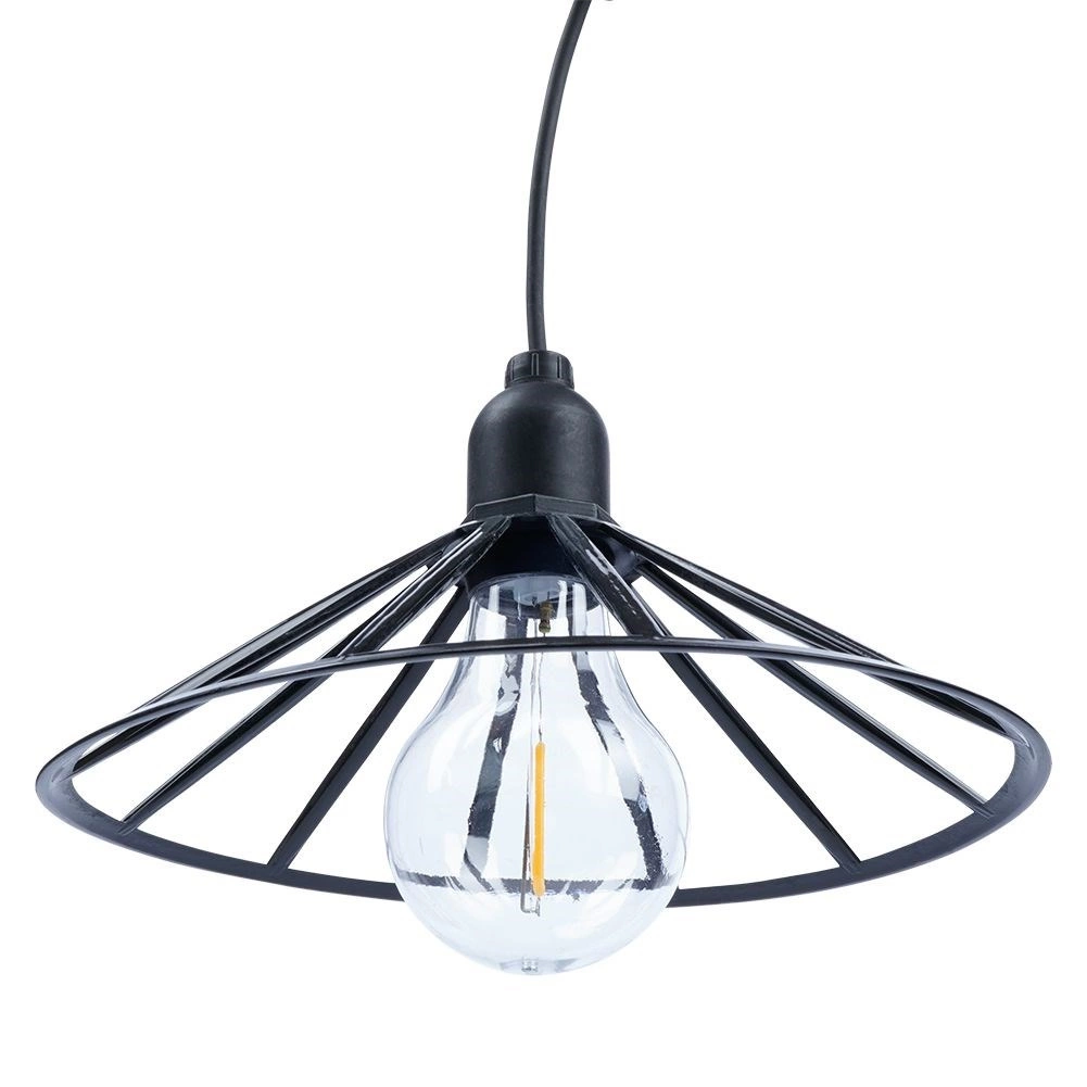 Această ghirlandă luminoasă decorativă adaugă spațiului exterior o notă primitoare. Șase becuri LED transparente cu lumină caldă, în cuști negre elegante, dispersează uniform lumina și creează o atmosferă plăcută pentru serile obișnuite sau ocazii festive.