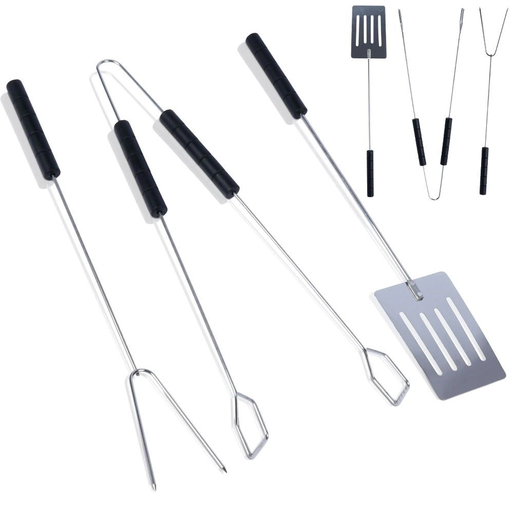 Ustensilele sunt fabricate din oțel de calitate, robust, rezistent la temperaturi înalte și potrivit pentru grătarul de zi cu zi.