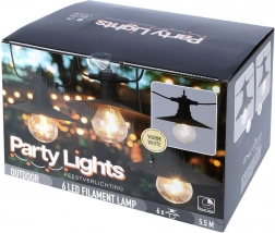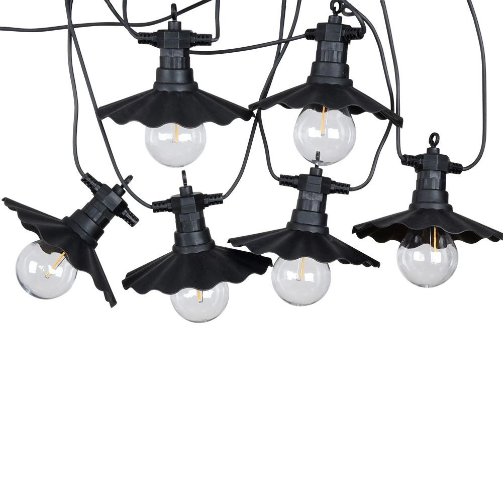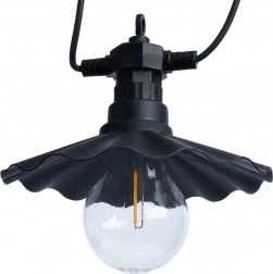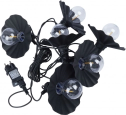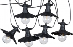 Această ghirlandă luminoasă decorativă este ideală pentru utilizare pe tot parcursul anului, atât în exterior cât și în interior. Șase becuri LED transparente cu nuanță caldă și abajururi negre stilate creează o iluminare ambientală plăcută pentru serile petrecute cu familia și prietenii. Datorită alimentării la rețea și protecției IP44, este pregătită să facă față condițiilor meteo obișnuite.