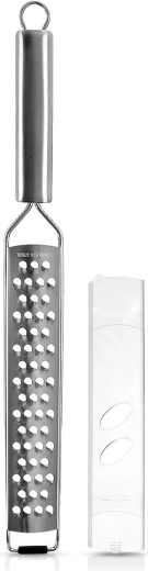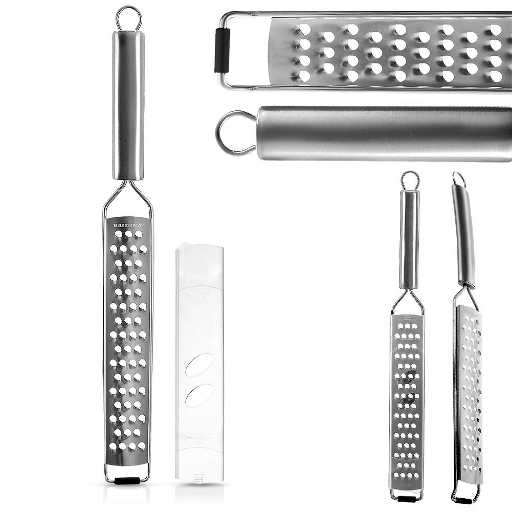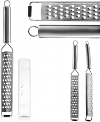 Răzătoarea este excelentă pentru brânzeturi tari, legume rădăcinoase, usturoi, nuci, dar și pentru coajă de citrice, ciocolată și condimente precum scorțișoară, ghimbir sau nucșoară. Include husă de protecție pentru depozitare sigură în sertar fără a deteriora celelalte ustensile. Fabricată din oțel inoxidabil durabil pentru întreținere ușoară și durată lungă de viață.