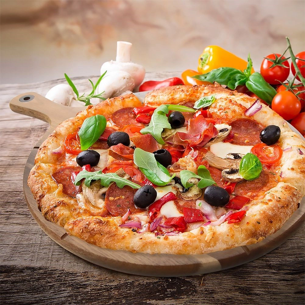 Această placă robustă și totodată ușoară din lemn de acacia facilitează tăierea și servirea stilată a pizzei. Canelurile de pe partea de lucru împart suprafața în șase segmente egale, astfel încât fiecare tăiere va fi rapidă, precisă și sigură. Partea netedă este ideală pentru servirea brânzeturilor, mezelurilor, produselor de panificație sau a deserturilor.