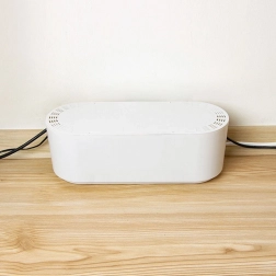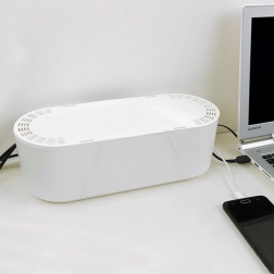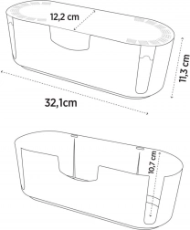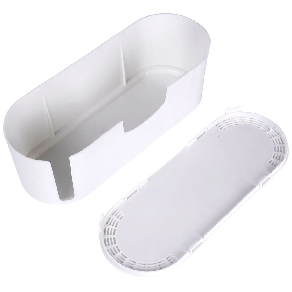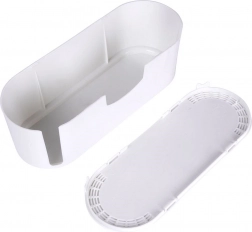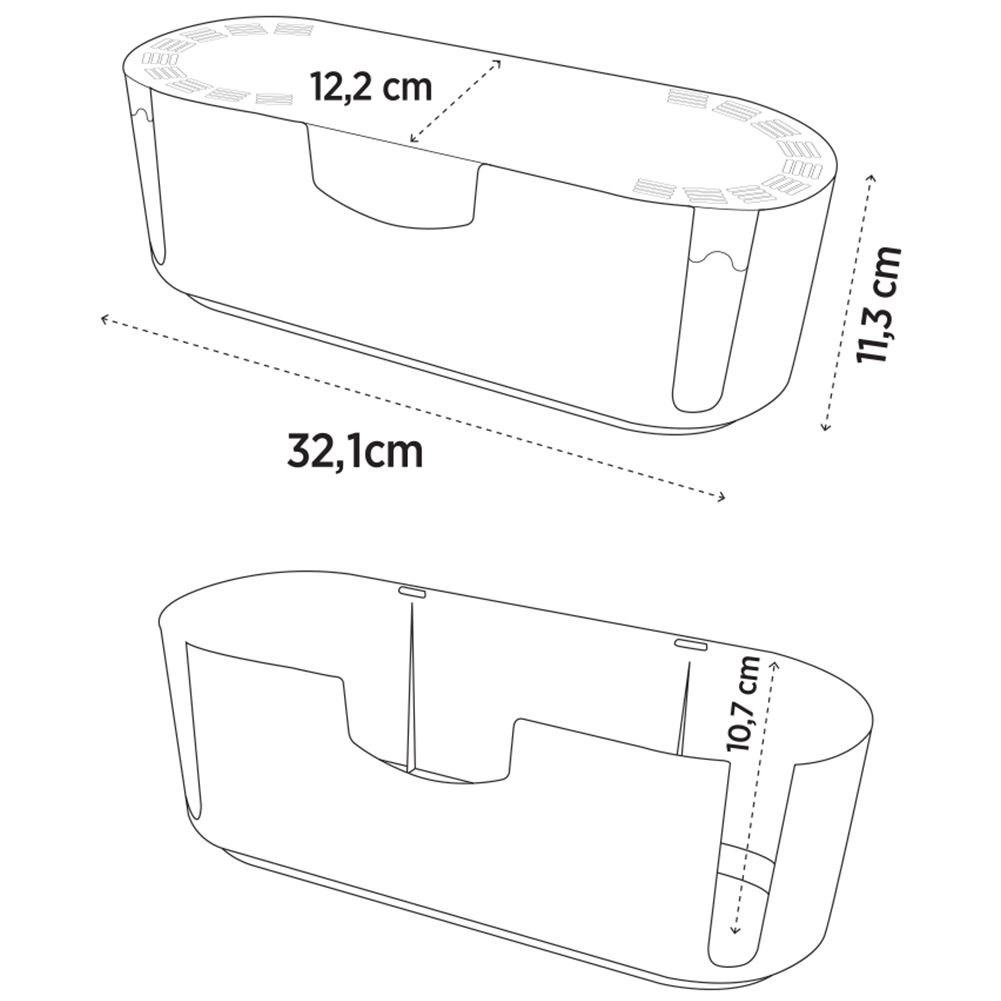 Datorită dimensiunilor compacte de 32 × 12 × 11,5 cm, cutia încape pe birou sau pe raft și totuși găzduiește o priză multiplă standard. Suprafața netedă, ușor de curățat, în culoare albă, se potrivește unui interior modern și protejează cablurile de praf, umezeală și deteriorări mecanice. Organizatorul crește totodată siguranța – limitează accesul la prizele și cablurile expuse.