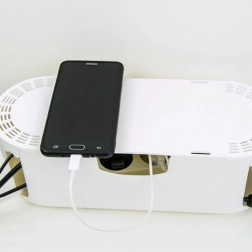 Organizați cablurile într-o singură cutie și păstrați biroul și colțul TV vizual curate și sigure.