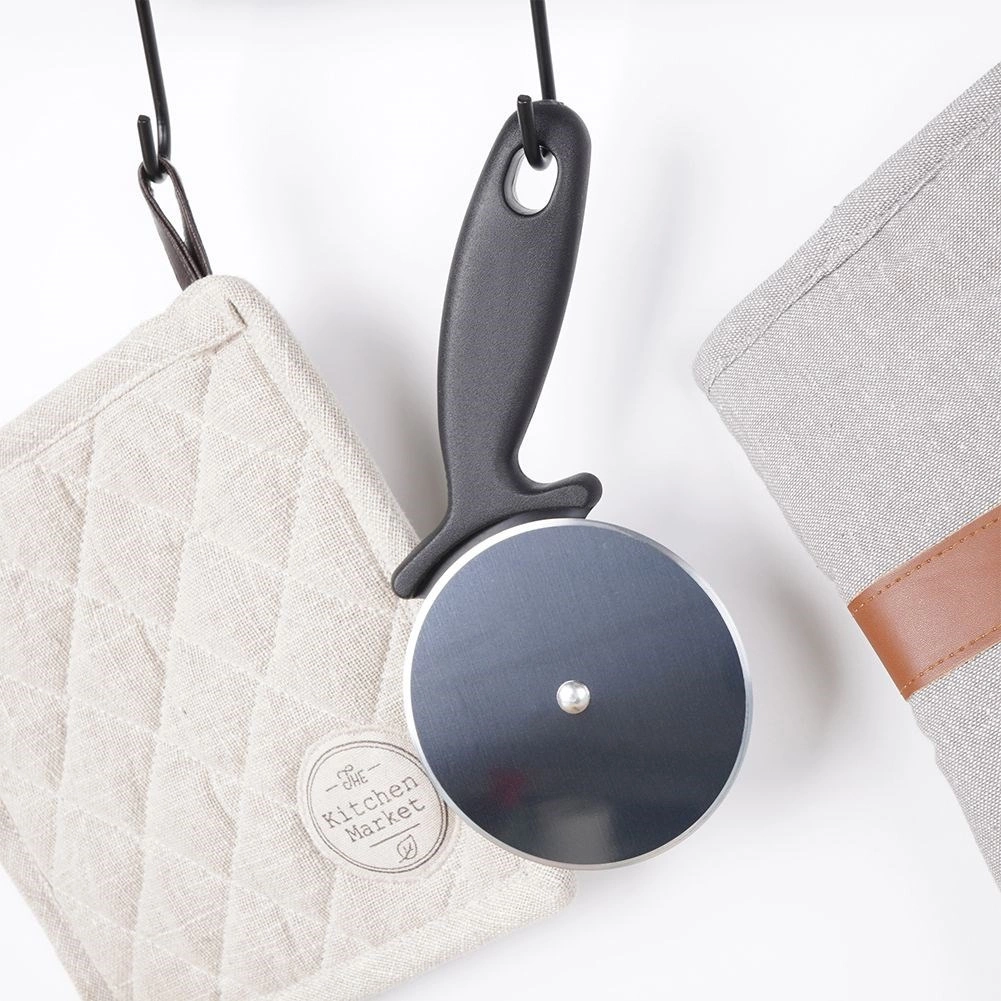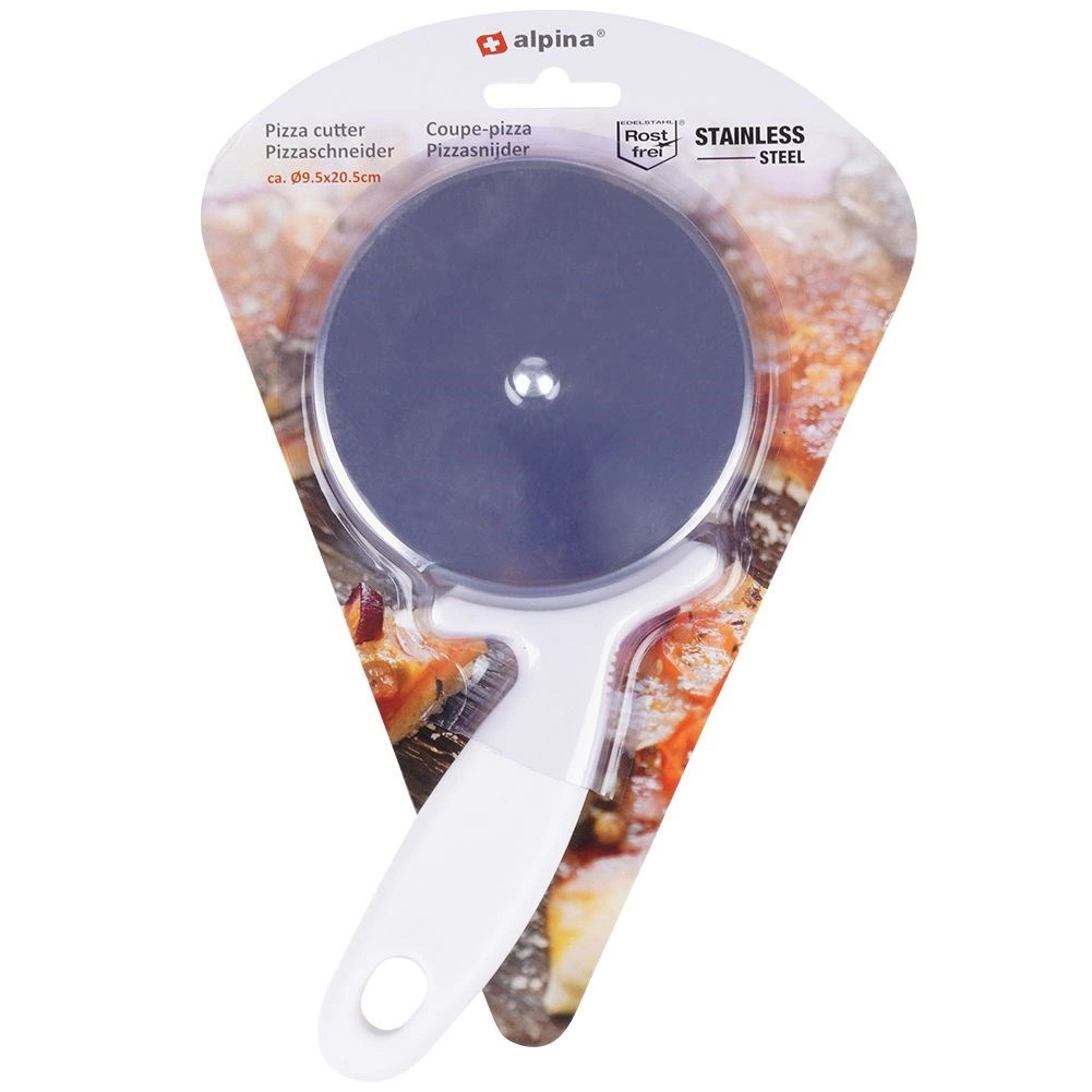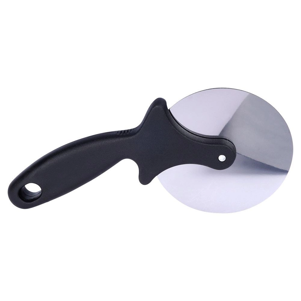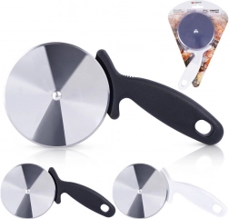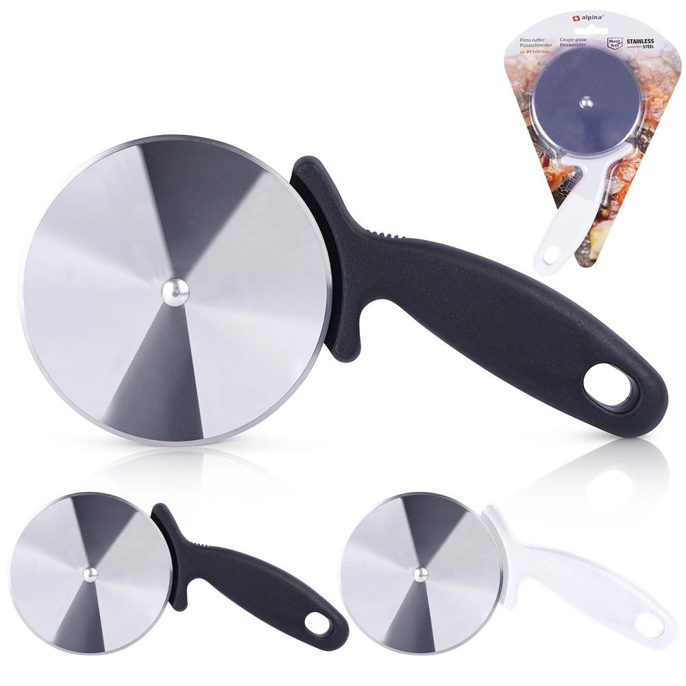 Acest cuțit durabil pentru pizza, cu disc rotativ din oțel inoxidabil, taie pizza, prăjituri și lipii în felii uniforme fără rupere. Mânerul ergonomic din plastic cu protecție pentru degete se potrivește bine în mână și asigură o priză sigură chiar și în utilizare prelungită. Datorită orificiului pentru agățare, îl depozitezi ușor pe bara de bucătărie.