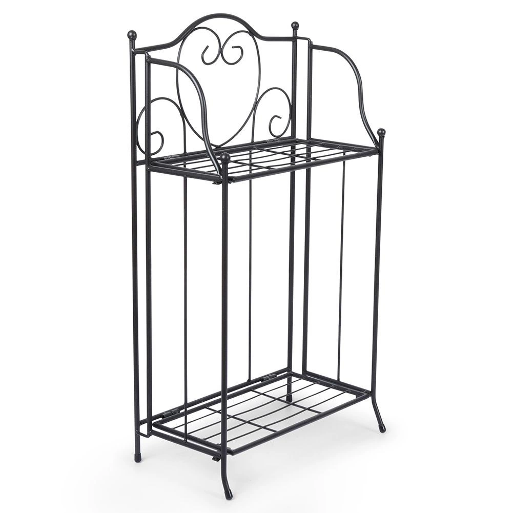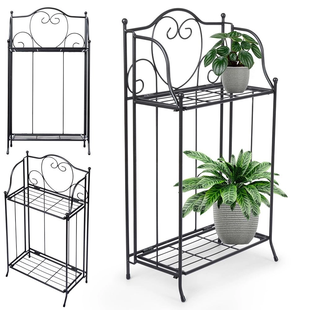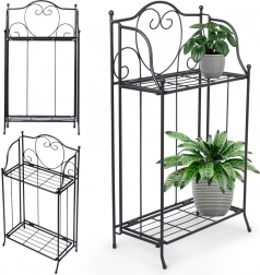 Elegantul suport pentru flori cu două niveluri, din metal negru, oferă un loc stabil și stilat pentru plantele și decorațiunile tale. Datorită dimensiunilor compacte 34,5 × 18,5 × 65 cm și celor două rafturi de 31 × 16 cm, creezi ușor un aranjament vertical chiar și în spații mici. Construcția metalică durabilă cu finisaj mat are un aspect rustic, este stabilă și potrivită atât pentru interior, cât și pentru un balcon sau terasă acoperită.