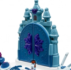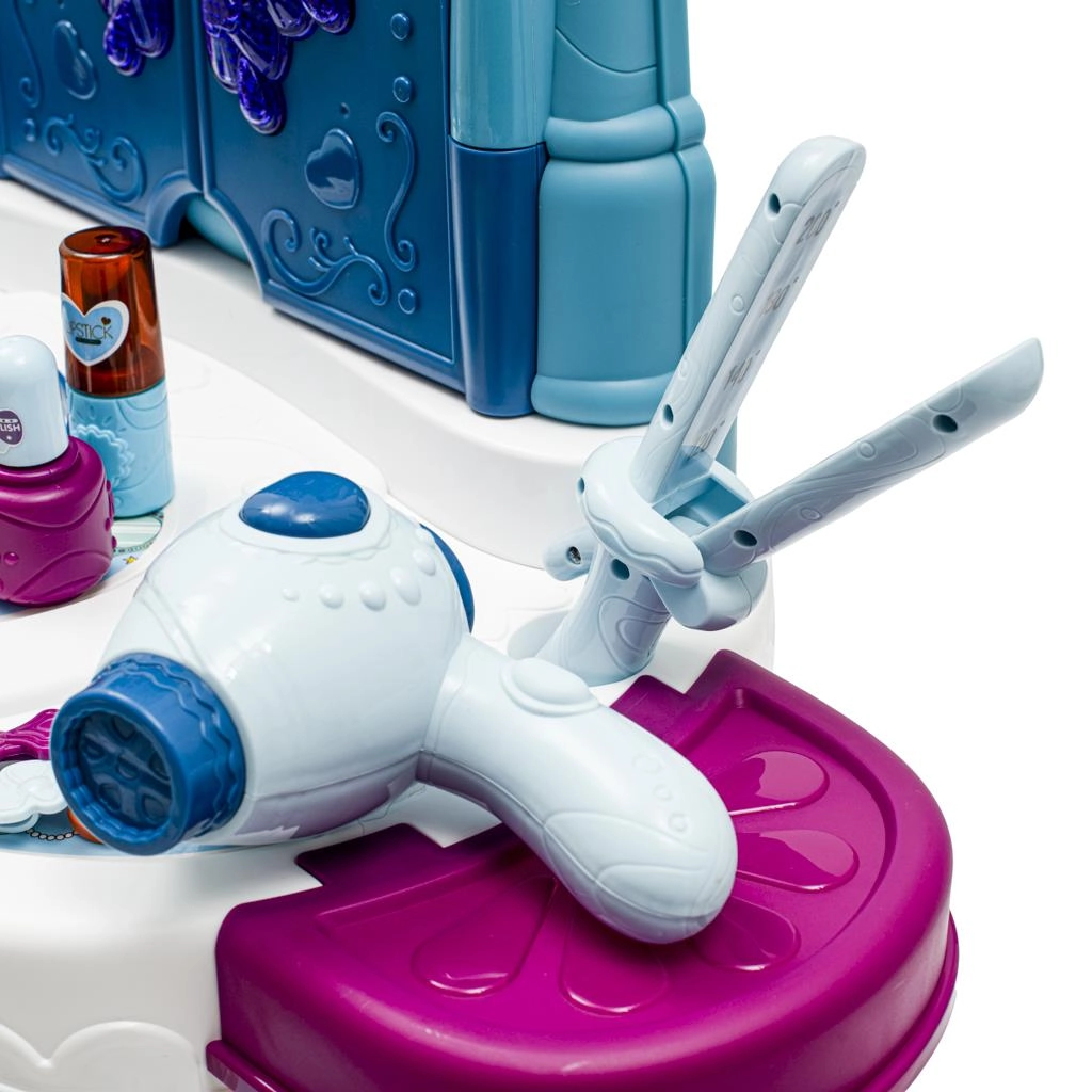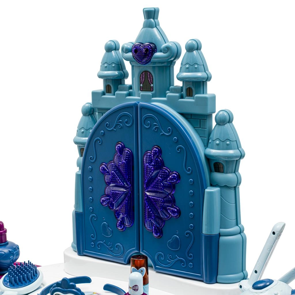 Oferiți copiilor propriul lor colțișor magic de frumusețe. Măsuța de toaletă BABY MIX cu design glaciar impresionează prin oglinda efect care se deschide la apăsarea baghetei magice și încântă prin efecte luminoase și sonore. Sertarul practic păstrează toate mărunțișurile, iar scăunelul asigură o ședere confortabilă în timpul jocului.